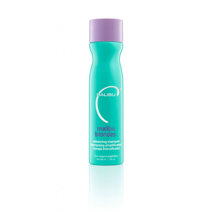 Tired of purple shampoos that dry you out? Sick of your blonde turning brassy, ashy, or muddy? This 100% vegan blonde maintenance system breathes new life into tresses to reveal haute hues and shimmering shine. Vitamin-enhanced remedy packets allow you to infuse vitamins while removing harmful mineral buildup. BENEFITS: Naturally removes discoloration, including brassy, green, and muddy tones Infuses moisture with an enhanced vitamin complex Improves elasticity, body, and bounce Protects and preserves color vibrancy FEATURES: Exclusive sulfate-free surfactant technology Proprietary formula guards against damaging minerals and metals Gluten-free, plant-based proteins improve flexibility and strength NO: sulfates, parabens, gluten or added salts Safe for all hair types and all ages Key wellness ingredients Allantoin Ascorbic Acid Betaine Flax protein Panthenol Turmeric KIT CONTENTS: Malibu Blondes Enhancing Shampoo (9oz) Malibu Blondes Enhancing Conditioner (9oz) Four FREE Blondes Wellness Remedy Sachets