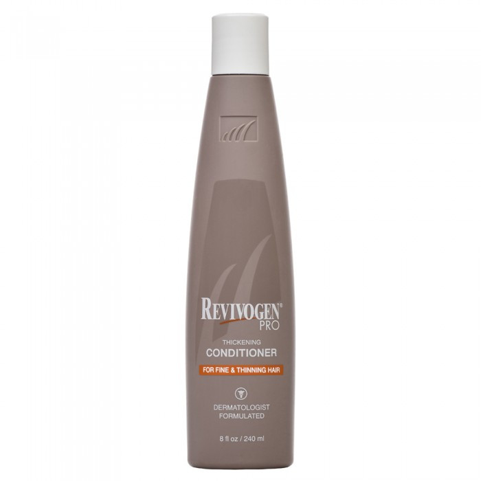 REVIVOGEN MD THICKENING CONDITIONER Created for limp and thinning hair, Revivogen Thickening Conditioner replenishes moisture, strengthens the hair shaft and adds volume and shine; instantly creating the look of thicker and healthier hair. And unlike many conditioning products, it won’t weigh down your hair, which is essential for those with thin hair! Revivogen Hair Thickening Conditioner, when used with Revivogen Bio-Cleansing Shampoo and Revivogen Scalp Therapy, will make your hair fuller and have more body. Our formulation moisturizes the hair by infusing natural nutrients, which reduces breakage to aid hair growth. Ingredients like Biotin B Complex and Saw Palmetto work in unison to encourage hair growth and hair strengthening. Revivogen Thickening Conditioner is safe to use with all hair types and is used by men and women. Safe for color-treated hair. DIRECTIONS: After you use Revivogen Bio-Cleansing Shampoo apply a small amount of Revivogen MD Thickening Conditioner to your hair, concentrating on the ends and dry areas of hair. Leave the solution in your hair for 2-5 minutes. If you would like additional conditioning. leave in 5-7 minutes. Rinse the conditioner from your hair thoroughly. Gentle enough for daily use.