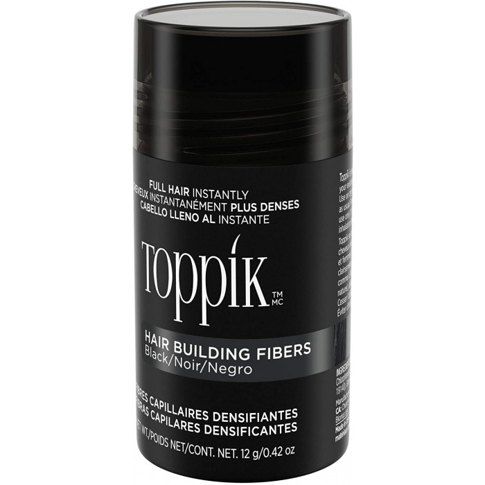 Toppik Hair Building Fibers, made of colored keratin protein, blend undetectably with existing hair strands to instantly create the appearance of naturally thick, full hair.