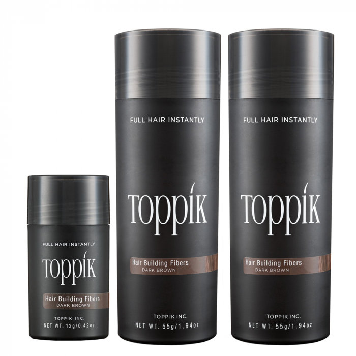 Toppik Hair Building Fibers, made of colored keratin protein, blend undetectably with existing hair strands to instantly create the appearance of naturally thick, full hair.