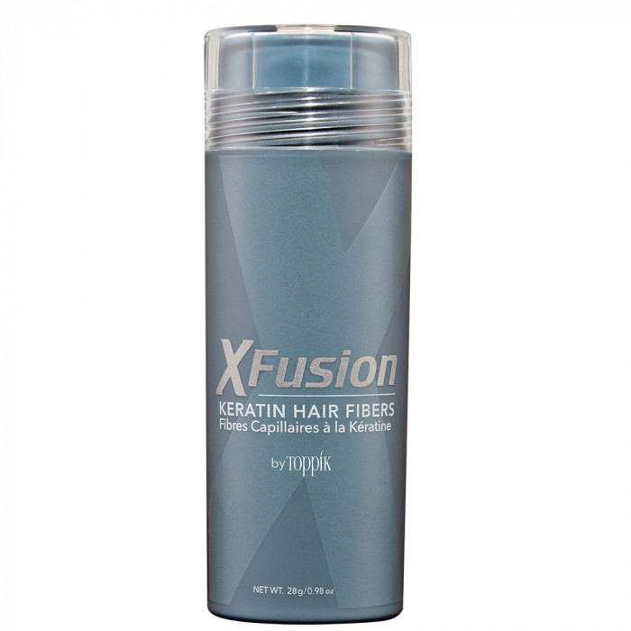 XFusion Keratin Fibers, made of colored keratin protein, blend undetectably with existing hair strands to instantly create the appearance of naturally thick, full hair.